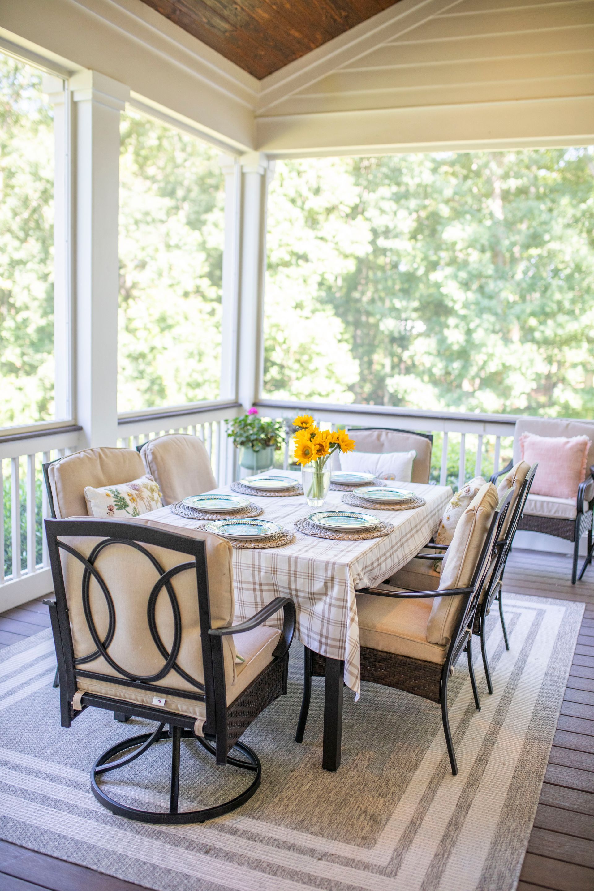 Enjoy the outdoors in comfort with a custom-designed screened porch, offering year-round protection and style.